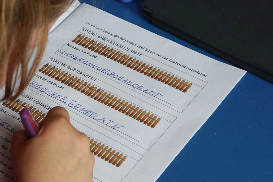 Verschiedene Techniken stehen zur Wahl, die schon seit Jahrhunderten eingesetzt werden, um Botschaften vor neugierigen Augen zu verbergen. Zum Beispiel den „Caesar Code“, welchen Julius Caesar nutzte um seine Botschaften zu verschlüsseln. Außerdem wirst du erfahren, was ein Gartenzaun mit geheimen Botschaften zu tun hat.