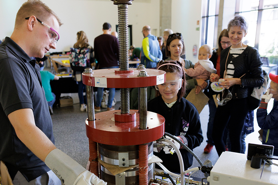 Am Samstag, den 13. September öffnete die MI(N)Tmachwelt dann ihre Türen für Kinder und Familien. Zahlreiche Mitmachstände luden zum Staunen, Forschen und Ausprobieren ein. So konnten Besucherinnen und Besucher beispielsweise in einem Roboterrennen antreten, eine eigene Wurfscheibe aus Naturfasern pressen, oder Brücken bauen. Ein besonderes Highlight für Groß und Klein war in diesem Jahr die energiegeladene Wissenschaftsshow mit den Experinauten.